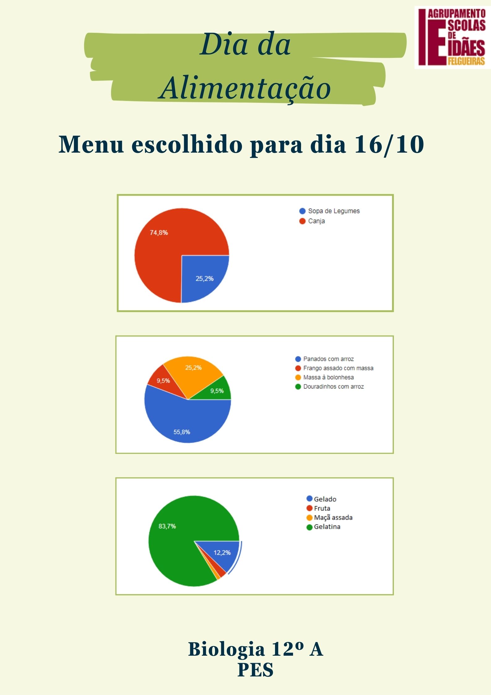 Para este efeito os alunos do 12ºA juntamente com a equipa do PES elaboraram um formulário de voto, acessível por QR Code, com três opções de ementas equilibradas e saudáveis para a comemoração deste dia. A ementa que obteve mais votos foi a servida na cantina. Os alunos dos vários ciclos de ensino participaram ativamente nesta votação e os resultados foram afixados próximo da cantina para consulta da comunidade escolar.