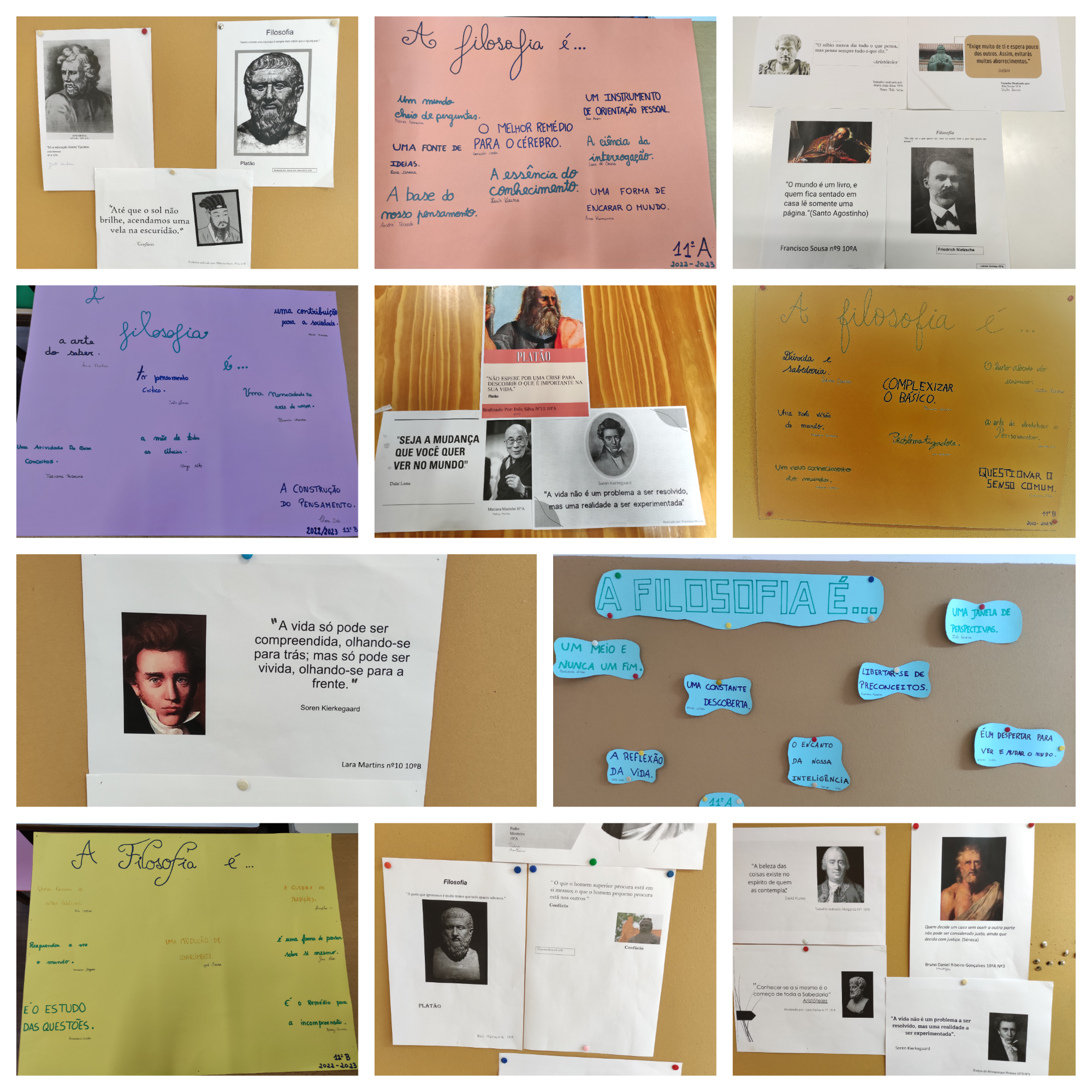 As turmas A e B de 10.º e 11.º anos participaram ativamente na construção de materiais para afixação em diferentes locais da escola, no sentido de partilharem os resultados dos seus trabalhos com toda a comunidade escolar e, assim, sensibilizar para a importância da disciplina no mundo atual.