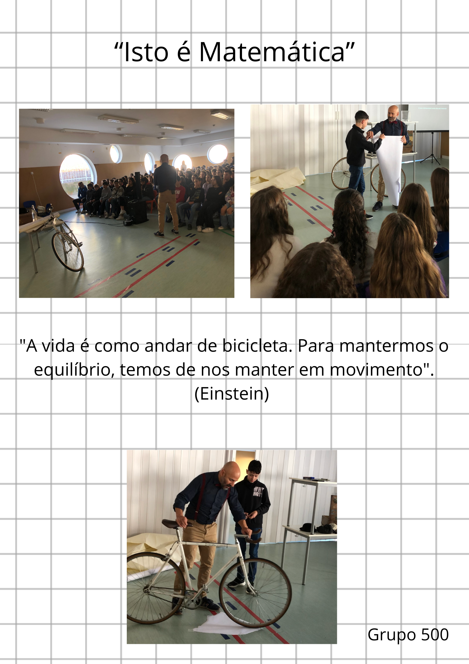 No dia 21 de novembro decorreu na nossa escola a atividade "A minha bicicleta calcula áreas!", dinamizada pelo grupo de matemática do 3.º ciclo e ensino secundário. A atividade, que contou com a presença do professor Rogério Martins, ajudou a mostrar aos alunos que a Matemática também pode ser divertida e faz parte do nosso dia-a-dia.
