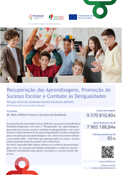 O envolvimento concertado entre a DGEstE e os parceiros beneficiários com vista à "Recuperação das aprendizagens, promoção do sucesso escolar e combate às desigualdade", tem como alicerce o desenvolvimento de ações enquadradas no plano integrado para a recuperação das aprendizagens dos alunos do ensino básico e secundário (PRA).