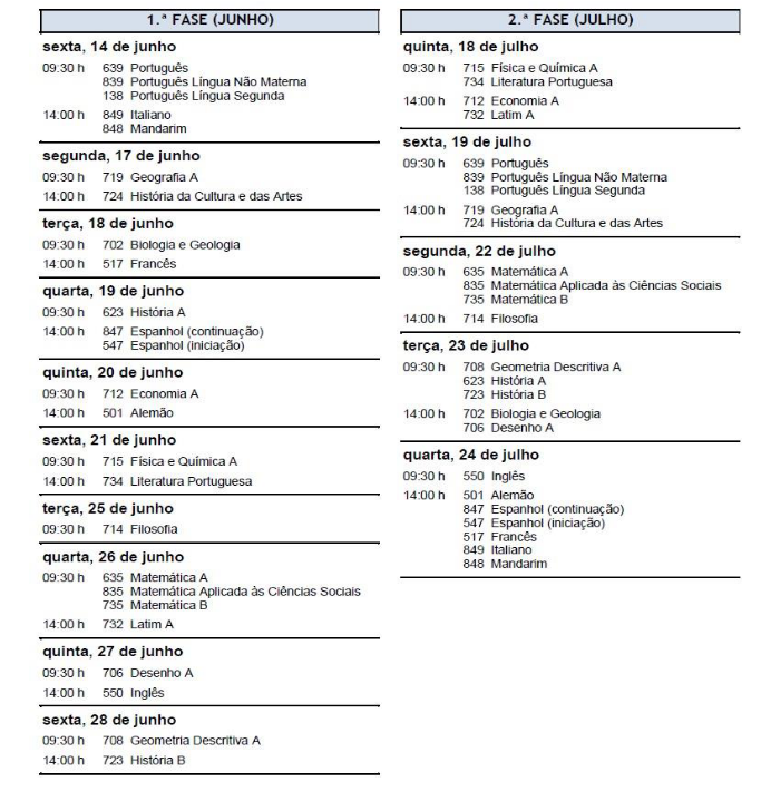 Informações -prova relativas aos exames nacionais no secundário, no ano de 2024 – aqui